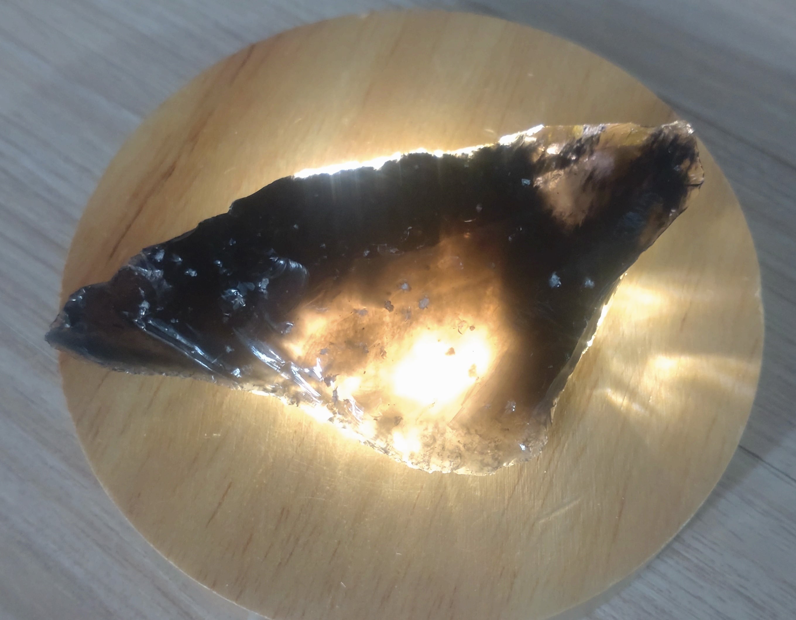 この個体は透明度が比較的高く、ライトを当てると端の薄い部分は透過します。