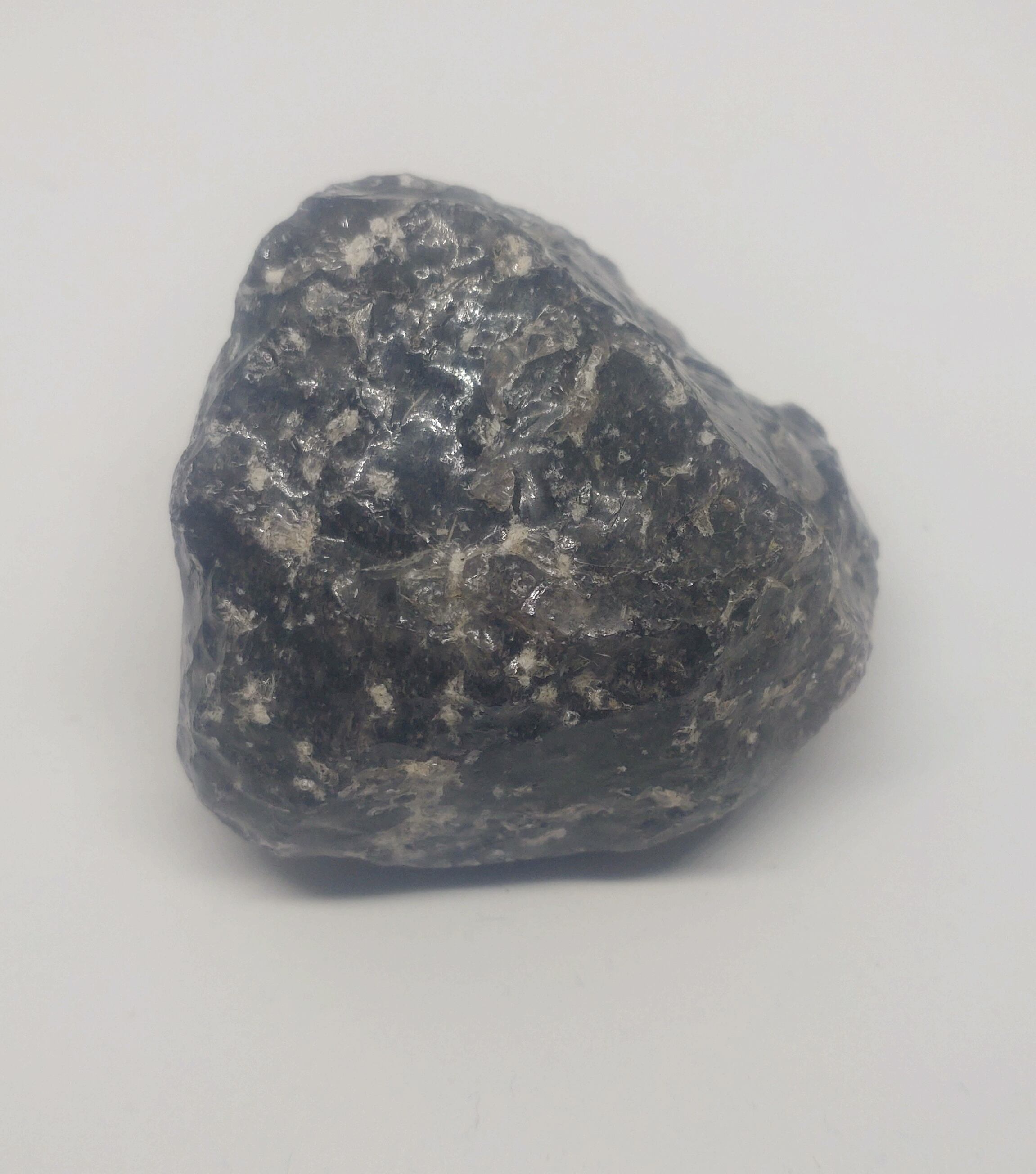 この石は神津島の砂糠崎という岬の海食崖にある、大規模な黒曜石層から産出した、未加工の原石です。